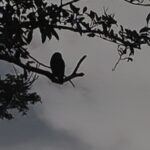 - 逆光のアオバズク?夜、真嘉比遊水池の周りを散策しているとき、ふと上を見上げたら、枝に何かが止まっていました。
