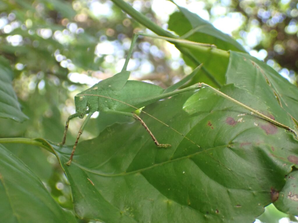 今日と明日、神森こすみれ学童クラブの宿泊利用があります。オリエンテーションの時、サッシにいるタイワンクツワムシの話をしたら、子どもたちも、緑色のタイワンクツワムシを近くで見つけました。