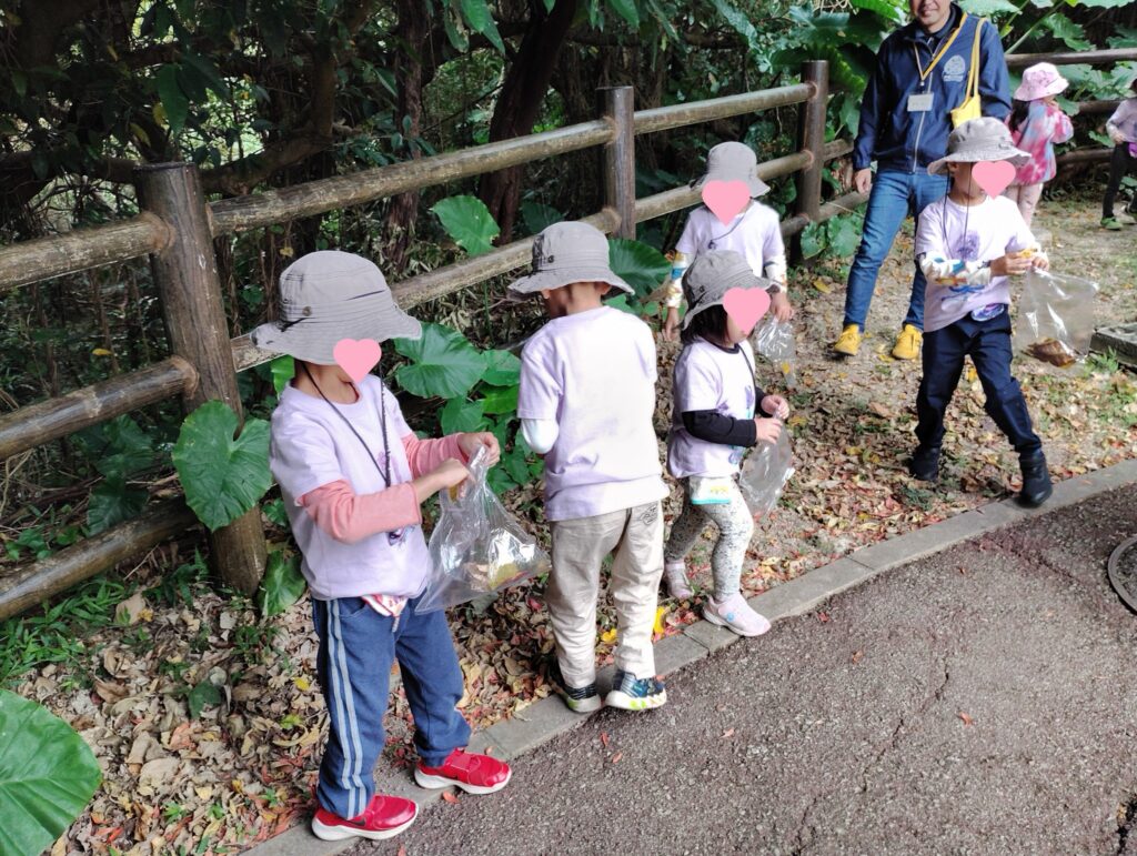 うるま市からの利用です。「森の指令ゲーム」と「落ち葉で森の水族館」を楽しんでもらいました。