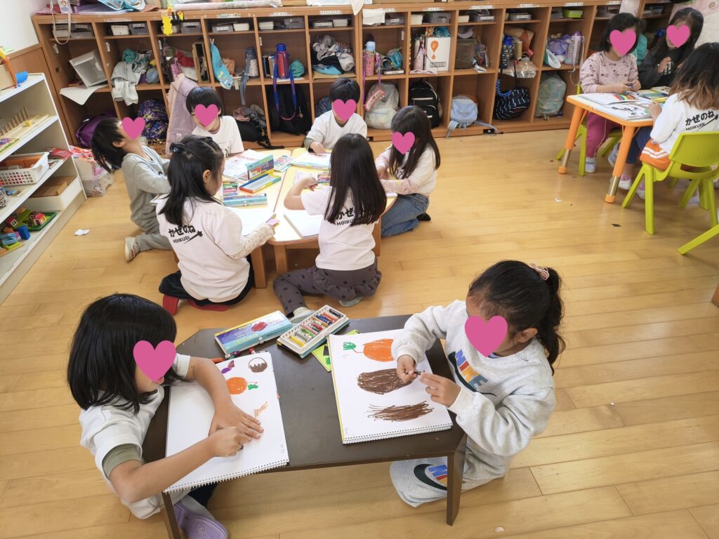 園に戻ってから、今日見つけたものをそれぞれ絵に描きました。書き終わった子どもには、発表をしてもらいました。