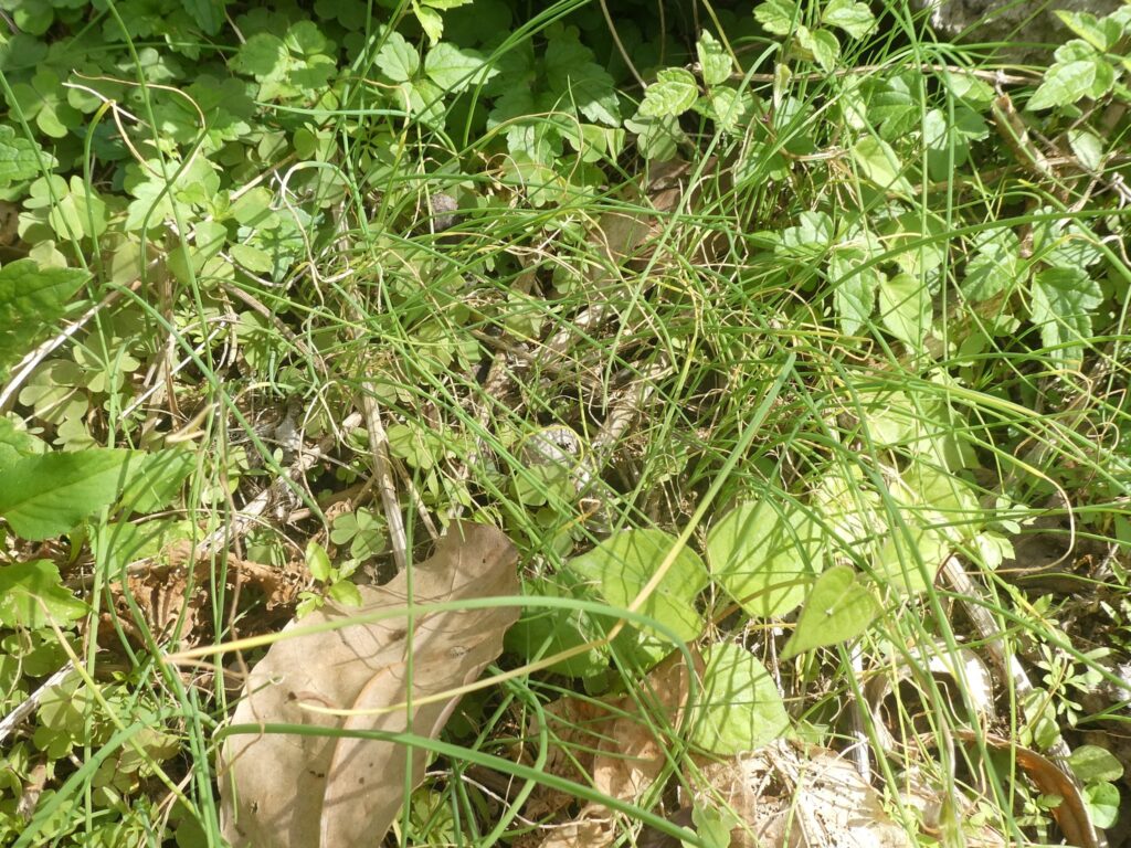 森の出口あたりには、ノビルが今年も生えていました。以前はもっと広く生えていたのですが除草剤が使われて生えなくなってしまいました。ここも、いつまで生えていられるか気がかりです。