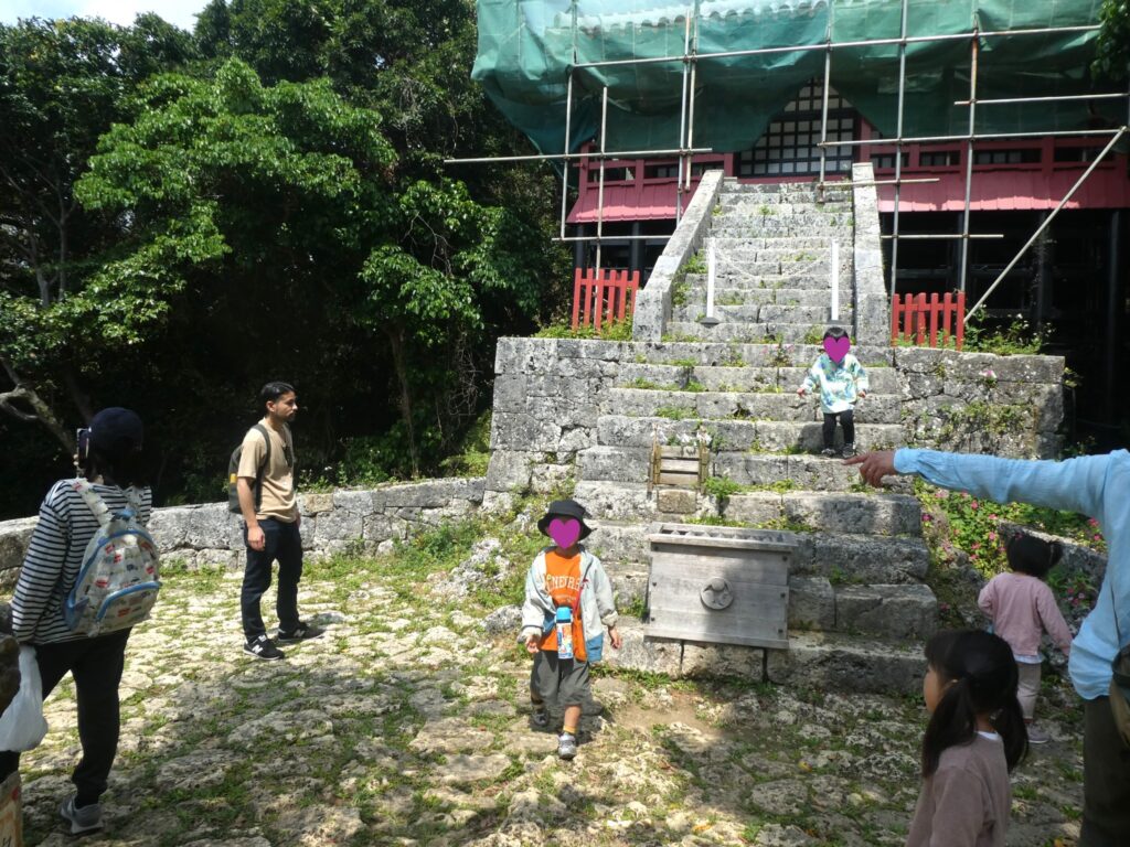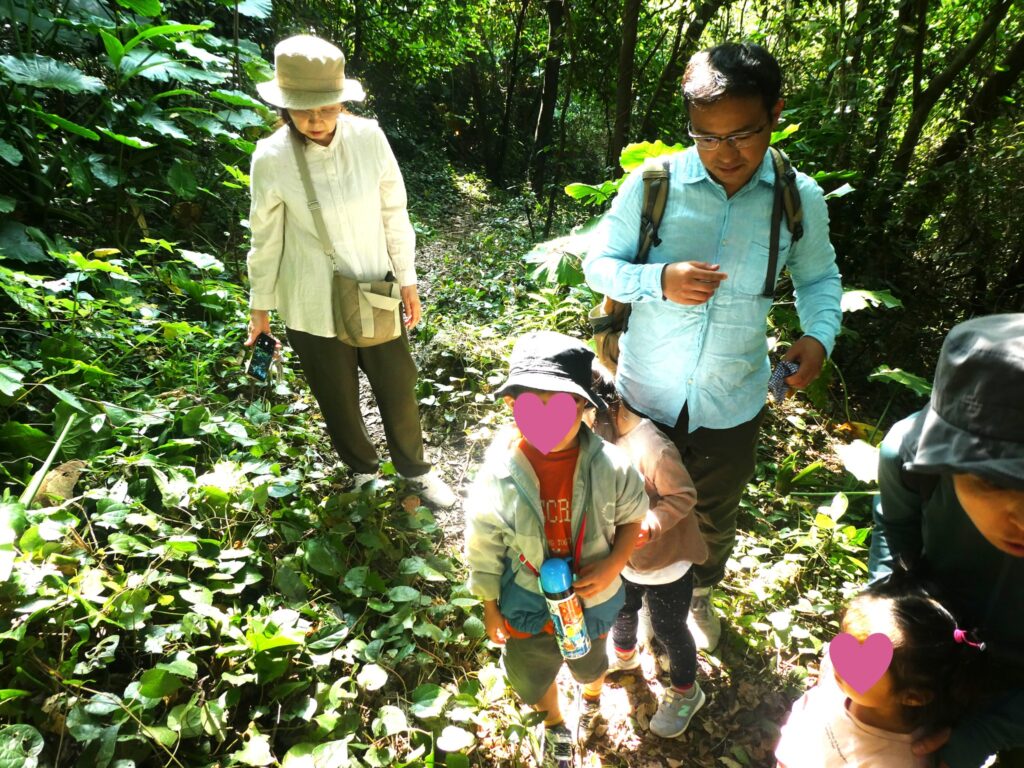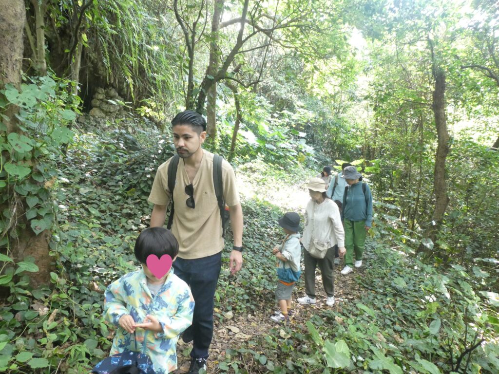 子どもたちは、生き物が大好きなようで、始める前から待っている間に見つけたサツマゴキブリやオキナワマドボタルを見せに来てました。今回も、森の中を抜けて、末𠮷宮まで行くコースにしたのですが、途中、子どもたちも積極的にいろんなものを見つけてくれて楽しかったです。