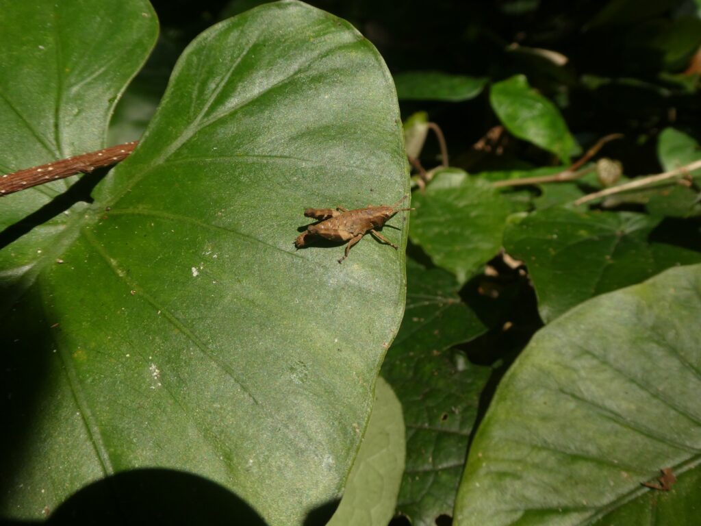 子どもたちが、オキナワモリバッタの幼虫を見つけました。最近、末吉公園でも遊歩道がきっちり整備されているところでは、少なくなっている気がします。