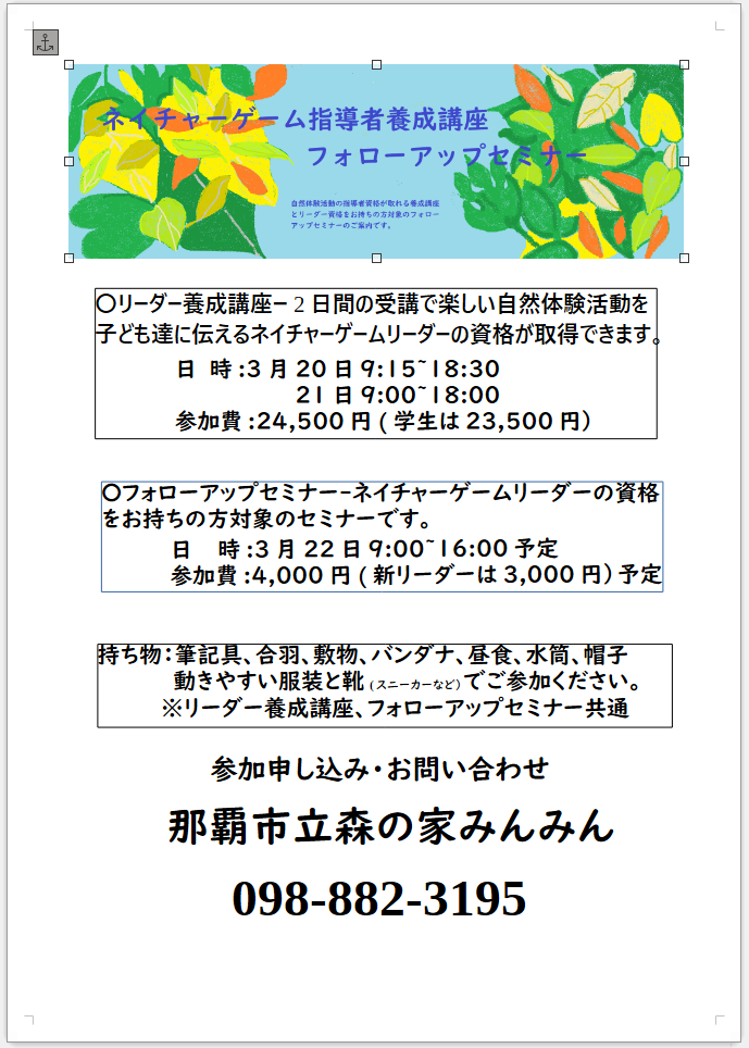 ネイチャーゲームリーダー養成講座 フォローアップセミナーのご案内