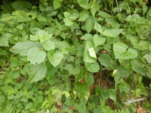 みんみんの近くのフウトウカズラが赤い実をつけています。フウトウカズラはコショウ科のつる植物です。末吉公園では林床を覆うイメージが強いのですが、木を登上って実をつける姿は、胡椒っぽいです。